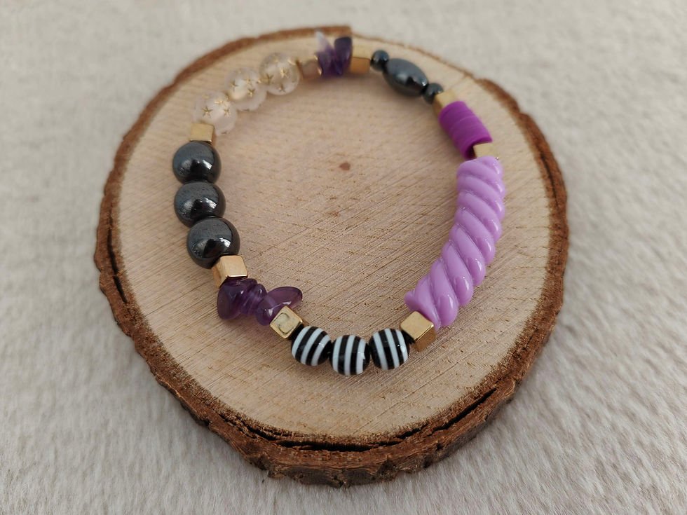 Bracelet fantaisie upcycling noir et violet